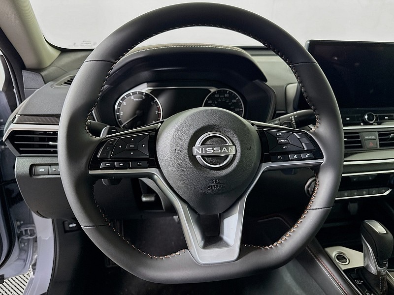Turn heads with this 2025 Nissan Altima SR in sophisticated Gray Sky, a sporty sedan designed for performance and style. Its aggressive exterior styling, including a distinctive SR front grille and sleek body lines, exudes confidence on the road. Inside, enjoy a driver-focused cabin with premium sport cloth seats, an intuitive touchscreen with Apple CarPlay and Android Auto, and available paddle shifters for a more engaging drive. The Altima SRs responsive engine and sport-tuned suspension deliver a dynamic, smooth ride, while Nissan Safety Shield 360 provides advanced safety and driver-assist features for peace of mind. The 2025 Altima SR blends athletic performance, modern technology, and refined comfort in one striking package.