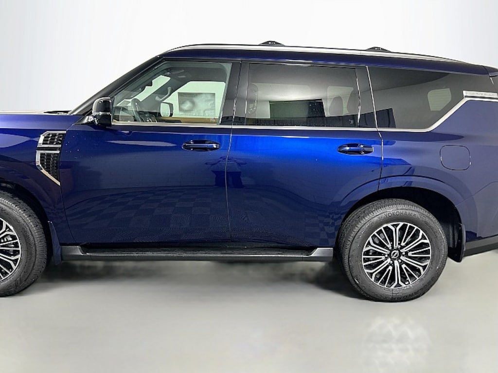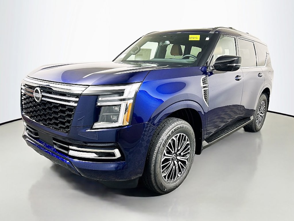 Stand out in style with the 2025 Nissan Armada in Deep Ocean Blue, a rich, captivating color that perfectly complements this SUVs bold and commanding design. From its signature V-Motion grille and chiseled body lines to its striking LED headlights, the Armada exudes strength and sophistication. Inside, youll enjoy a spacious, upscale cabin with seating for up to eight, premium materials, and advanced technology to keep every drive connected and comfortable. Powered by a robust V8 engine, the Armada delivers impressive towing capability and confident performance on highways, city streets, and off-road trails alike. With Nissan Safety Shield 360 standard, you'll have the confidence of advanced driver-assistance features every time you hit the road. The 2025 Armada in Deep Ocean Blue is where power meets luxury for your next adventure.