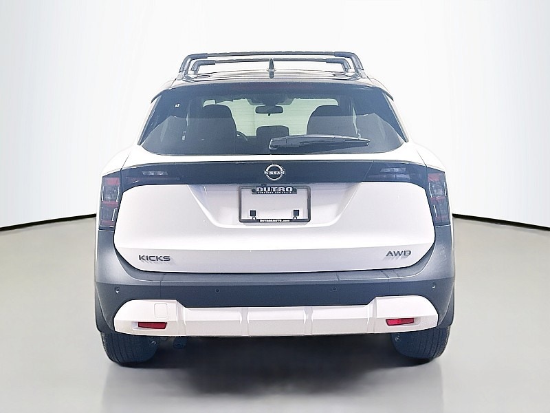 The 2026 Nissan Kicks SV in two-tone Aspen White with a Black Roof delivers standout style with everyday practicality. Its contrasting roofline and clean, modern design create a confident look that fits perfectly into urban life. Inside, the cabin is thoughtfully designed with intuitive technology, comfortable seating, and advanced safety features that help make every drive feel simple and secure. Agile handling, efficient performance, and flexible cargo space make this Kicks SV an easy choice for commuting, errands, and weekend plans alike.