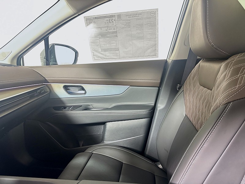 The 2026 Nissan Murano Platinum in two-tone White with a Black Roof delivers sleek sophistication and premium comfort in a beautifully redesigned midsize SUV. The striking contrast of the crisp white exterior and bold black roof highlights the Muranos flowing, modern design and upscale presence on the road. As the top-level Platinum trim, it surrounds you with luxury touches, advanced technology, and intuitive safety features designed to elevate every drive. Inside, the refined cabin offers spacious seating, premium materials, and a quiet ride that makes daily commutes and long trips equally enjoyable. Smooth performance and confident handling complete the experience, making this Murano Platinum the perfect blend of style, comfort, and modern capability.